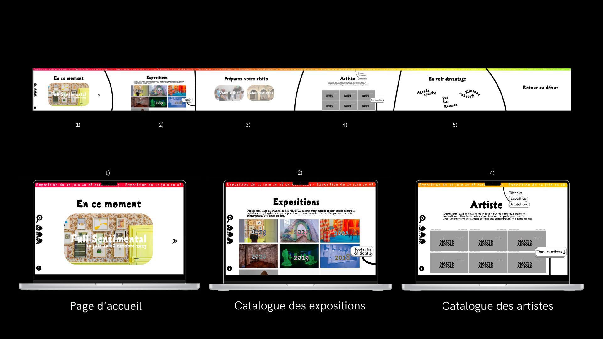 Maquette du site web de Memento, 2023 Commande fictive: Dans le cadre de la refonte de son identité visuelle, le centre d’art contemporain Memento situé à Auch (32) fait appel à vous pour la création d’une esquisse de son futur site internet.